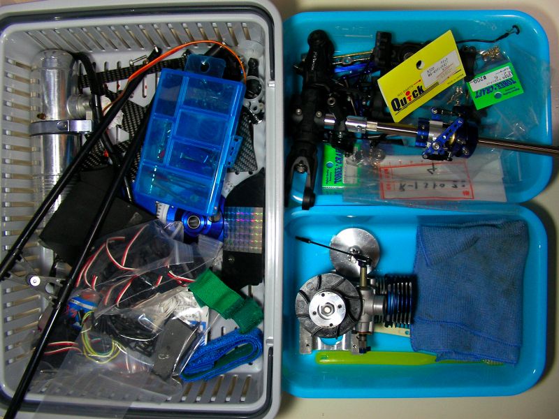 サビの程度は各所によってまちまちなのでとりあえずほぼ全部バラシの状態に。メインマスト回りのベアリングやテール部分、エンジンなどとりあえず降ろします。まずエンジン。ケースはアルミ製なので錆はないのですが、梨地の部分は一部がうっすらと腐食しているような感じです。サビ取り剤などで処理するとほぼ元通りの状態になりました。ヘッド部分を外してみると、シリンダー内は特に錆も認めません。オイル入りの燃料が充満していたせいか、全く普通といった感じです。ただ、プラグはもう使えなさそうな印象です。キャブレターも問題なく、キャブレターローターもスムーズに動きます。どうやら、燃料まみれになっていた分、腐食は最小限にとどめられたようです。ストックオイルや怪しげなIXLオイルの効果もあったのかもしれません(笑)ただし、クラッチは材質上結構錆びてます。サビ取り研磨剤を塗りながら歯ブラシでこすると、元通りになりました(^^)/さて、その他メカ類です。サーボは全て降ろし裏蓋を外して点検です。高級サーボではないのでOリングはありませんが、ケース内への水分侵入はなさそうです。基板の錆も認めません。ラダーサーボはS9254、こいつはOリング付きなので油分・水分の侵入はさらにないだろうと推測。ふたを開けて点検しましたが予想通り錆などは認めませんでした。ジャイロも分解したかったのですが、特殊なネジで封印してあるためあきらめることに。どうせオーバーホールへ出すのだから関係ないと言えば関係ないのですが、この目で見ておきたかったです(^^;;