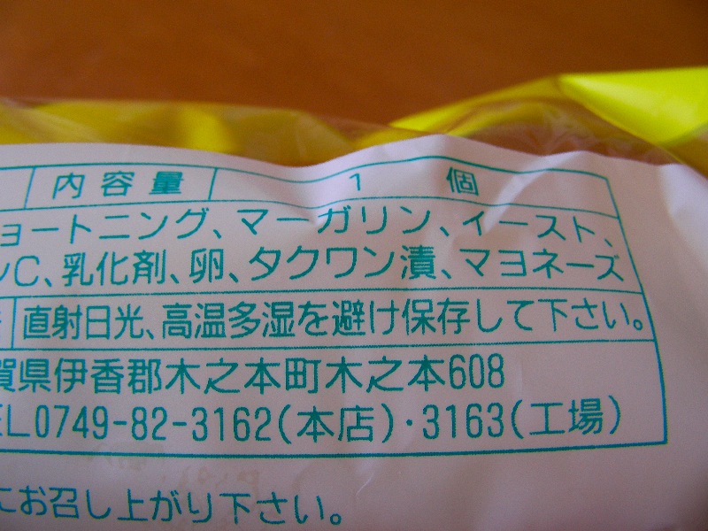 追伸:先日、巷で噂の『サラダパン』なるものを取り寄せました。近江地区近郊に販売が限られているというこのパン、なんと中身は【たくあんのマヨネーズ和 え】です。食べてみると意外や意外、かなり美味しいです。適度な歯ごたえ・塩味の具材、そしてやや甘めのコッペパンが渾然一体となっています。ネット通販 も可能ですので興味のある方はどうぞ(^^;;