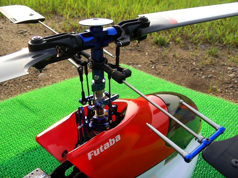 スカディーを車から降ろし、ローターを取り付け燃料を入れます。すると、ヘッド部のシーソーを止めているネジがゆるんでいるのを発見。締め直しました。おそらく前回の事故でゆるんでしまったのだと思います。