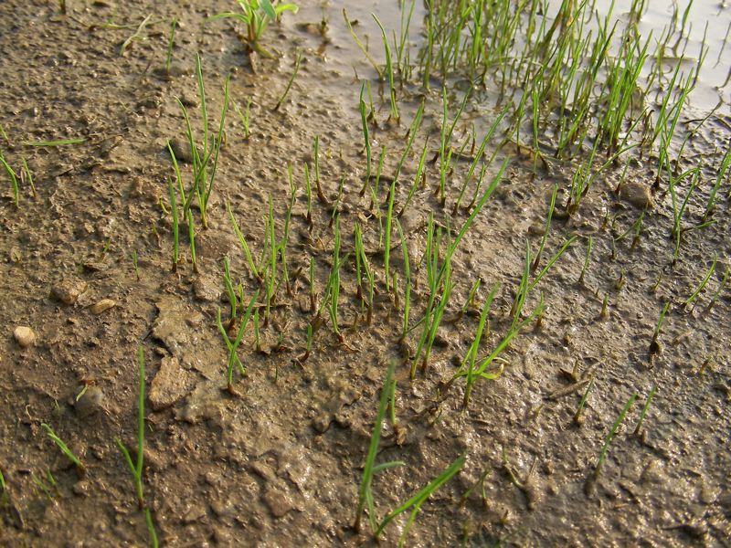 現場に予備のリンケージを持ってきているわけではないので、これでは飛ばせません。仕方なく撤収。帰りにリンケー ジを買いに行ったのでした。ロッドエンドは予備を持っているので今回はM2x30のアジャストロッド(品番:2522-003)のみを購入。修理自体は5 分もあれば終わるお手軽コースでした。ただ、飛ばしに行く機会がないので修理の成果を確かめられるのは当分先になりそうです(泣)先日蒔いた芝のタネ。少しですが発芽してきました(^-^)/