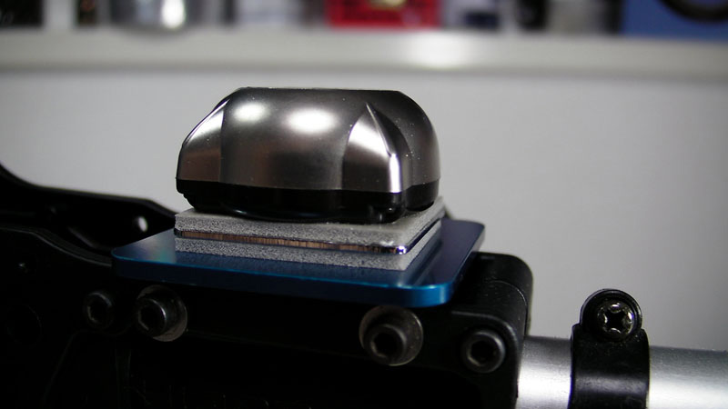 ラダーサーボは抱き合わせてあったS9254です。GY401に使用されるサーボと同一です。GY502はGY401と同じテール保持力とされていますが、アンプが別な分左右の保持力を変えたりするなどの細かな設定が可能になっています。欲を言えばGY611がいいのですが、そこまでの腕もないのでまずはステップアップと思っています(^^;;ジャイロ本体を定番位置に貼り付けますが、取説にはシールド板を挟めとの指示が。GY401ではそのような指示はなかったのですが、ノイズに敏感なんでしょうか?ジャイロマウントがアルミ製ですので、あまり関係ないような気がしますがとりあえず指示通りに貼り付けてみました。