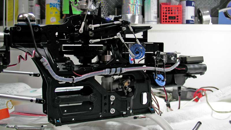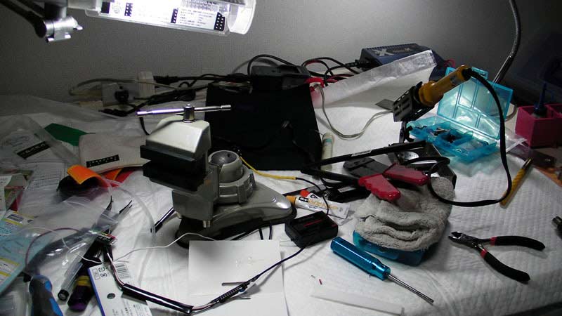 行ったり来たりしての作業だったので結局無事ジャイロを配置し終えたのは朝方。おまけに受信機電源の電池残量がなく、動作確認もできない有様(笑)