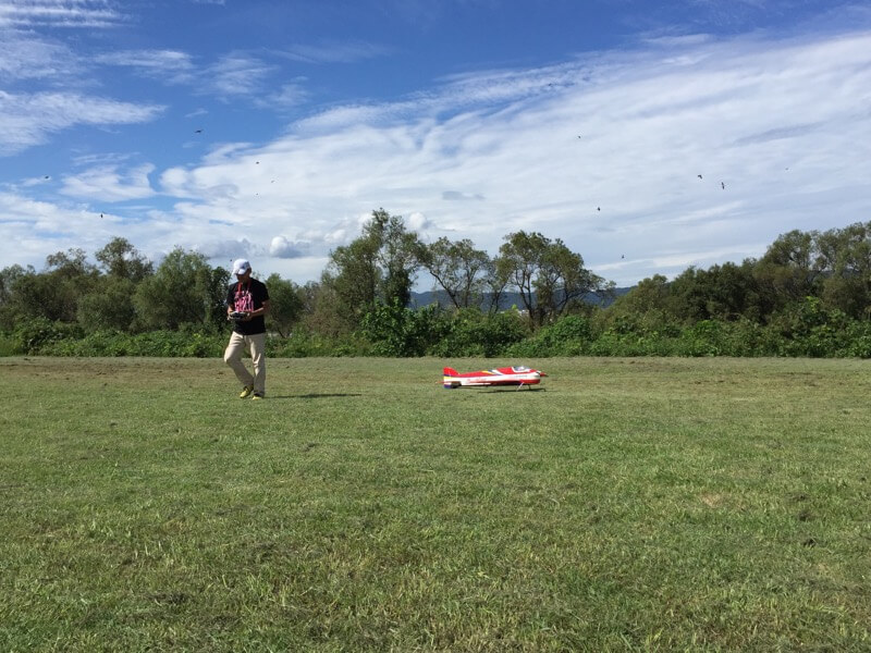 大会が近いからでしょうか、みなさんパターン練習に勤しんでおられました。おいやんはIdeal3號機(Breitling仕様)のシェイクダウンです。サーボもアンプも新品でちゃんと飛んでました(笑)おいやんのIdeal3號機も無事に帰還。あたりにツバメ飛びすぎ(^^;;