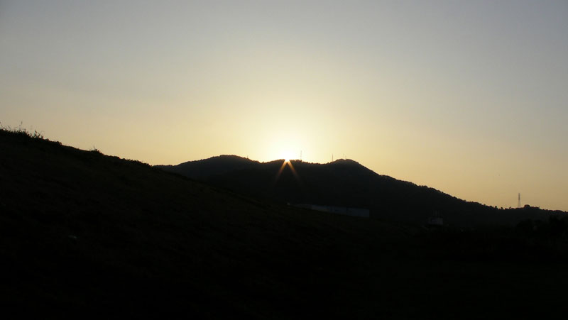 山の稜線へ日が沈む直前の様子。明日もいいお天気だといいのですが…。