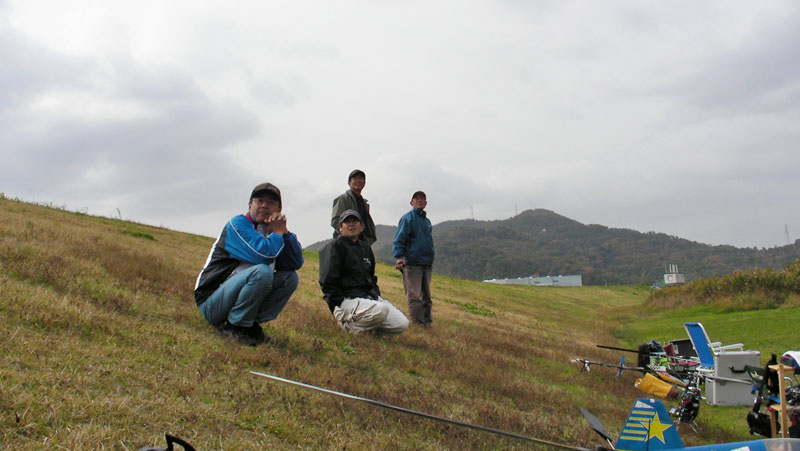 hatayanさんはSDXの振動がイマイチ取り切れていない様子。2号機は快調そうでした。KさんはT-REX600。フリップもずいぶん安定してきました。Y2さんはいつもの電動機。風にも負けず飛ばしていました。N井さんはI店主と時々交代しながらも大破なく無事終了。JYALAさんは2500円?の新調キャノピーで攻めまくり。色がネイビーブルーっぽい感じなので黒のローターと相まって700クラスなのにずいぶん小さく見えます。最初遠目で見たときは550~600クラスくらいかと思いました(^^;;