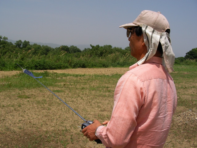 Kさんはいつものホバリングを中心とした練習。対面飛行も随分安定し、上空で少し機体が流されてもすぐにリカバーできるようになってきています。最近は墜落なども少ないとのこと。いい感じになってきました。