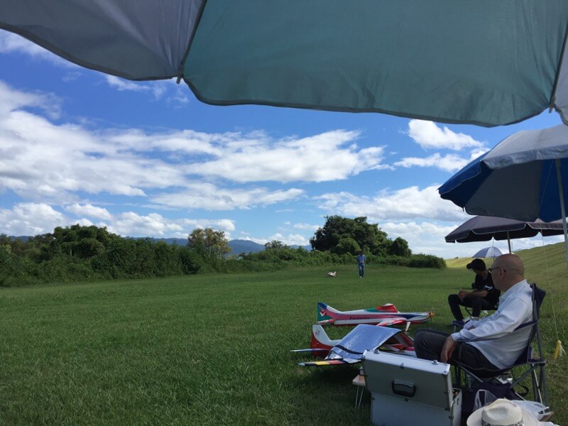 九州地方へ台風が上陸するかも…という予報のため朝早めに飛行場へ。すでにI店主はほぼ終了、T口さんとK2さんがちょうど機体搬入中でした。今日はBix3とEdge540、あとP3。P3は昨日の地点へT口機を捜索に。木の中に埋まってしまっている感じで、近づかないとよく見えませんがちゃんと確認できました。ただ、周辺の状況から回収はほぼ不能のようです…orz