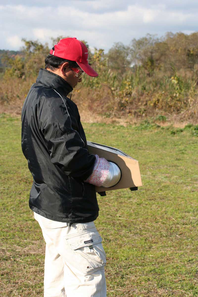 は大賑わい。飛行機組も含め10名程度が集結。I戸さんは相変わらずの3D三昧でしたが、プロポ防寒グッズを自作されています。ほとんどの部材が100均というオリジナリティあふれた逸品です。鉄人28号でも操縦できそうなスタイルですが、ダクトの位置などもう少し改善が必要らしいとのこと。さらなる改良があるのでしょうか・・・?