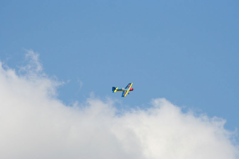 飛 行機組のTさんは相変わらず安定された飛行。離発着が美しく、機体の大きさも相まって実機さながらの飛行です。飛行機はヘリ以上に遠く・高く飛ばされるの で、ビデオが追いつきません(笑)10倍ズームなんかした後には手ぶれの嵐が・・・。電動機だけあって風切り音が気持ちいいです。