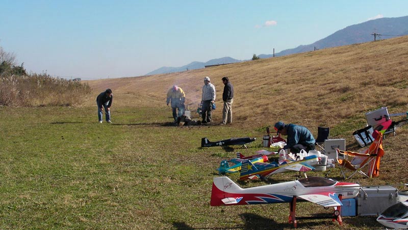 僕はといえば先日と同様基礎練を。アイドルアップでエンジン回転が高い感じがしたのですが、フライト後I戸さんから【エンジンがかわいそう(笑)】 といわれてしまいました。ヘリの場合はニードル以外にもスロットルカーブやピッチ調整など複数の要因が絡むので、ぼちぼちと仕上げていくことにします。 バック飛行は・・・まぁマシになったかな? 途中危うくテールから墜落しそうになりましたが・・・。その他今日の飛行場のスナップをば。 そんなこんなで穏やかな日曜日でした。僕が帰るまでにI店主は一度も飛ばされず、K2さんはスカディーを飛ばさずメカトンボのみ、Uさんとは入れ違いになってしまいましたが楽しませてもらいました。これぐらい気候が穏やかだと飛ばす気にもなるんですけどねぇ〜