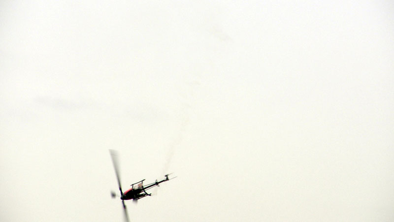 。結局1タンクも飛ばせずじまいでした。その後はT-REX600Nを飛ばされていましたが、背面中にスライドさせてしまい、高度が足りずそのまま墜落。ヘッド周りが逝ってしまいましたが中破という感じです。