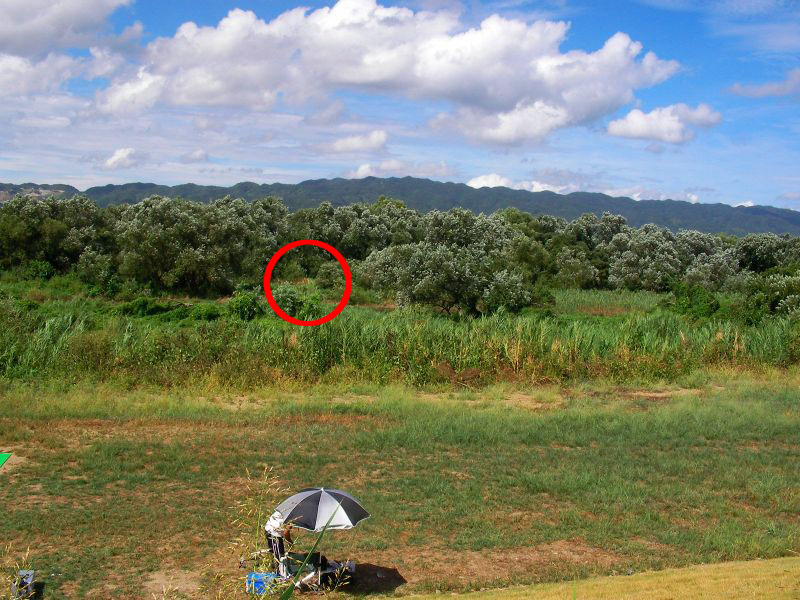 8月終わりごろだったかなあ、僕も向こう岸に落としました。さっさーさんと逆で、西側の高い木のある辺りです。対岸の岸辺に機体上半分見えてる形でした。そこは川幅7mぐらいだったので、下流に20mほど歩くと川幅2mくらいになり、腹までの水深でしたので、渡って回収できました。