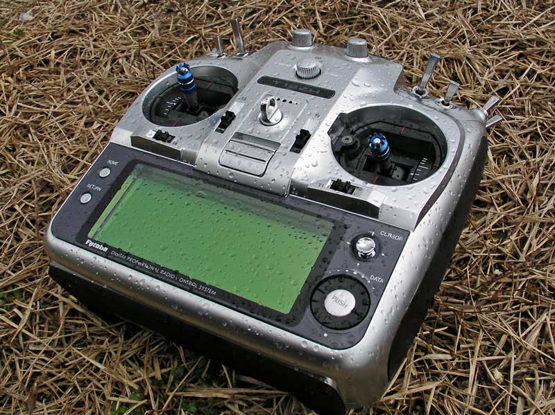 。休日というのに出動はヘリのYさん1人のみ。T-REX700の調整飛行をされていました。そそくさと準備をし、エンジン始動。エンコンを上げますが・・・回転していきそうです。こりゃダメだということで設定の見直し。Yさんがスカディーを持ってきているので、一緒に設定を見ることに。送信機も同じT12Zなのでこういった時には便利です。Yさんからジャイロの動作角を 最大にしてみてはとのアドバイスがあり、アンプ側で左145%(Max.) 右120%に設定。とりあえず取れる範囲でいっぱいいっぱいまで振れるように しておきました。また動作方向は送信機側の設定がNORMだったのでとりあえずREVに。しかし回転変わらず、再度NORMに設定。ジャイロの動作方向も 同じ、AVCS、ラダー操作も同じになったことを確認し再度ホバリング。おおっ、何とか浮上しました(^^)/