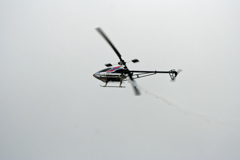 。休日というのに出動はヘリのYさん1人のみ。T-REX700の調整飛行をされていました。そそくさと準備をし、エンジン始動。エンコンを上げますが・・・回転していきそうです。こりゃダメだということで設定の見直し。