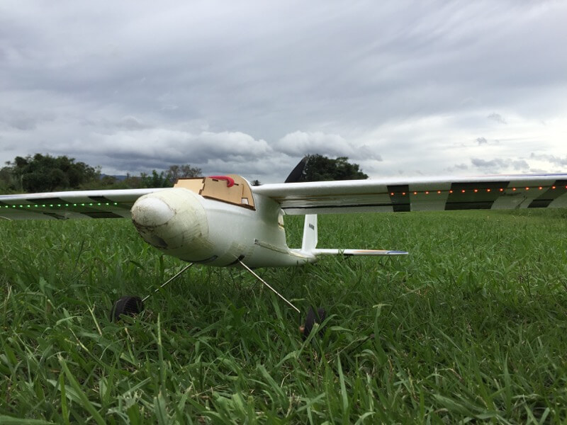 さて、週が明け台風が接近。Bix3の視認性をあげるべく主翼前縁にLEDを仕込んでみました。真っ昼間はともかく台風前の曇り空なら大丈夫だろうと飛ばしてみましたが、全然見えません(^^;; 風も強いし1Fでそそくさと撤収。LED追加を検討します…。晴天ならともかく曇り空でも見えません…orz