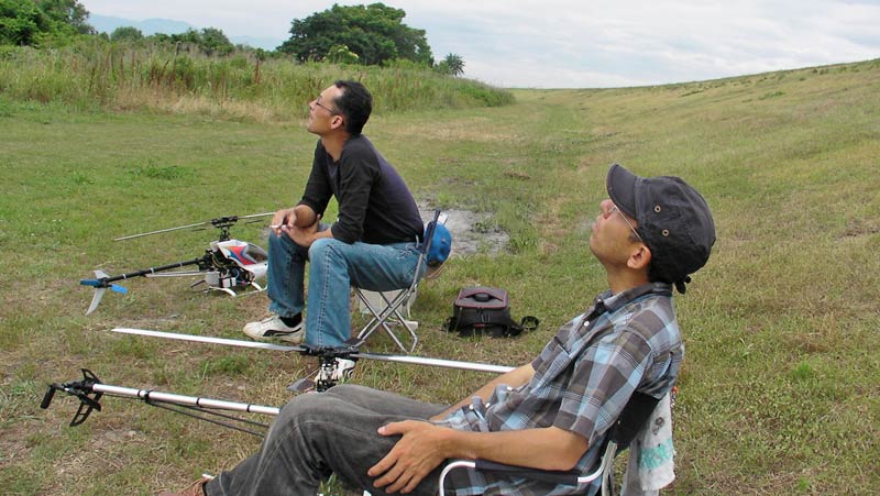 左:いつも撮影していただくI戸さん 右:カルマート飛行中のI元さん
