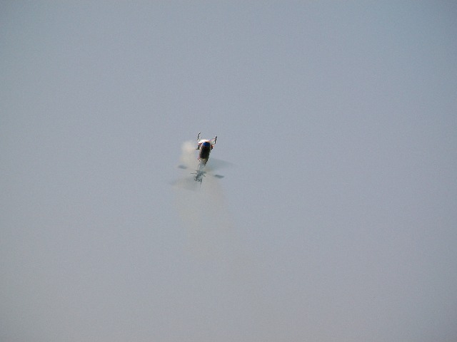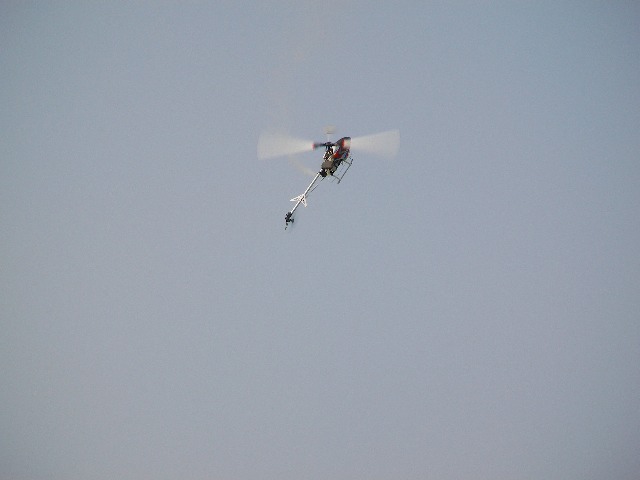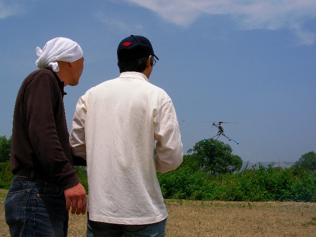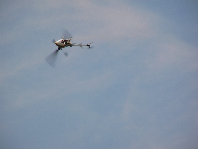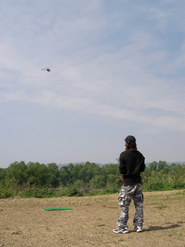 再度サイドフリップにもチャレンジ。無事成功し着陸。思い切りでブ ンブン振り回しているので、かなりの逸材と見受けました。やっぱり思い切りが大事なんでしょうねぇ。田辺の方は上空でのホバリングです。この方も丁寧なフ ライトで上達も早いように思います。