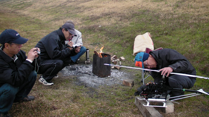 僕はいつもどおりのフライト。弐号機の修理ができない状態なので初号機のみです。昨日と同じような感じで3F。ラストは背面オートロからの着地時にテールローターが軽くヒットしローターが折れてしまいました。純正プラのローターなのですが、この時期は硬いのかな?試しに無編集のままYouTubeへアップ。単品ならこれでいいかな?