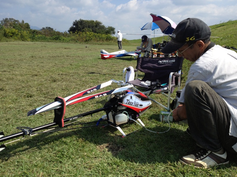 先週は台風でしたが今日は快晴。昨日の飲み会でガタガタだった身体にムチ打ちつつ飛行場へ。なんと草刈りしたばっか…(!_!) 昨晩は結構しっかりした雨だったのですが、それにもめげず草刈りしていただいたようです…多謝m(__)m とりあえず今日は初号機・弐号機とも2F。正面からの風が強くて飛行機組も難儀していましたが遭難などもなく無事終了。 明日も飛ばしに行きますよ〜(^^)/
