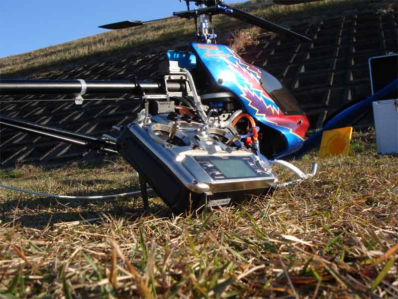 いつものようにYSスカディーを出し、エンジンの調整です。前日と同じような感じですが、やはり前回同様ちょっと安定しないような感じです。ホバリング時 もかなりの高回転です。スロットルカーブとピッチカーブを調整し、さらにスロットルリンケージも調整しました。まだリンケージが渋かったようです。あと、 テール駆動ベルトが少し緩いように感じたので張り直しました。