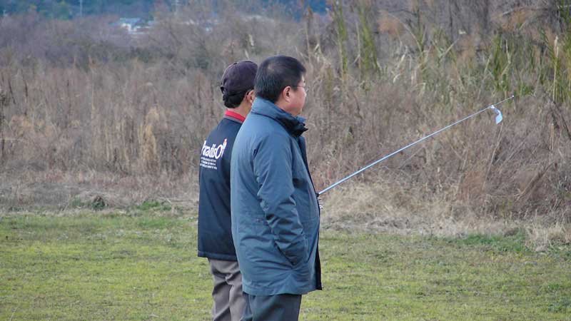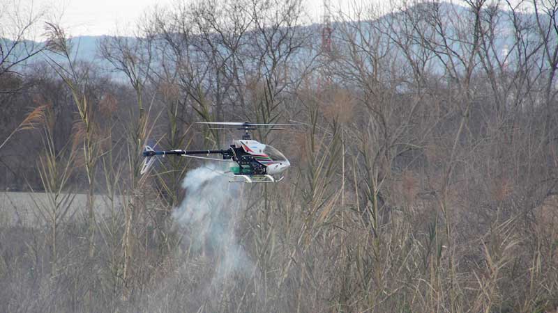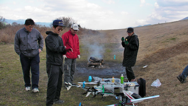 そんなわけで気を取り直し弐号機を始動。この時期のYSエンジンは特にかかりが悪いですが、まぁなんとかエンジン始動。しかし実際に飛ばしてみるとエンジ ンに元気がありません。とりあえずスロットルカーブをいじることでその場をしのぎましたが、降ろした後に確認してみるとニードルが2.25回転くらい開いてます(笑)ちょっと開けすぎのようです。う〜ん、これも子供がいじったのかも知れません・・・。本当はニードルを再調整した上で、再度フライトといきたかったのですが所用のためここで撤収。次回以降に期待です