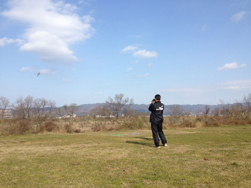 さて、正月休み最終日の今日、2012年初のフライトに行って来ました。今日は私設応援団付き(笑) 天気は快晴で、風もあまりなく暖かな日でした。JYALAさん、Yさんに続いて到着しましたが、その後はK2さんやhatayanさん、W林さん、SGさん、ハーレーに乗ってお昼寝しにきたKmさんなども来られ賑やかでした。 昨年コケた初号機を修理し、ローターはストック分のInfinity 620mmカーボンで初フライト。ところがトラブル続きでした…(;_;)