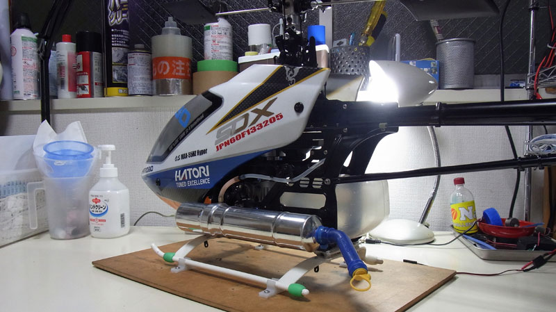 初号機は先日の墜落から修理を施し、サーボホーンおよびローターを新調しました。頑張ってニュートラルの精度を上げたのでトリムもほとんどいじらずにオッケー