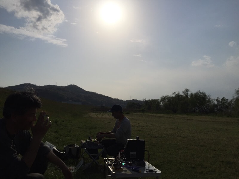 僕の220も初っ端からちゅど~んしてしまい、FPVカメラやケーブルが草ぼうぼうの飛行場へ散逸。皆さんのお力を借りながらなんとか回収できましたm(__)mコールサインは出しても良さそうな気がするんですが、とりあえずマスク(笑)