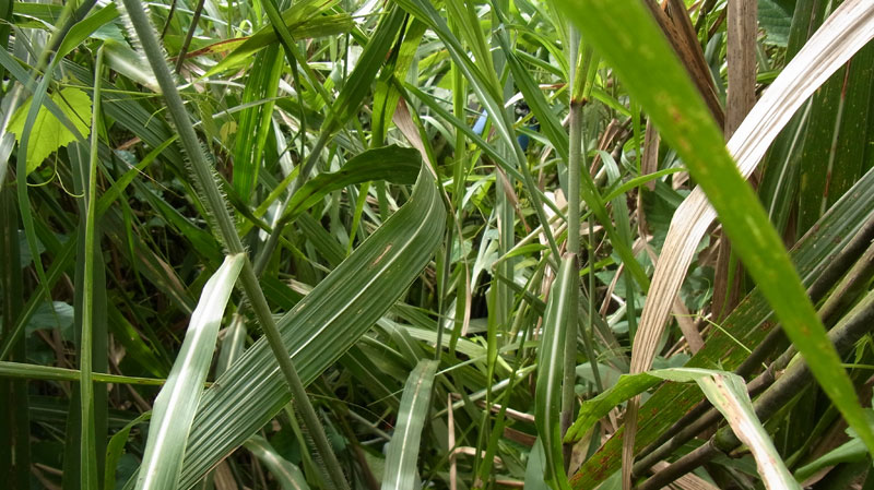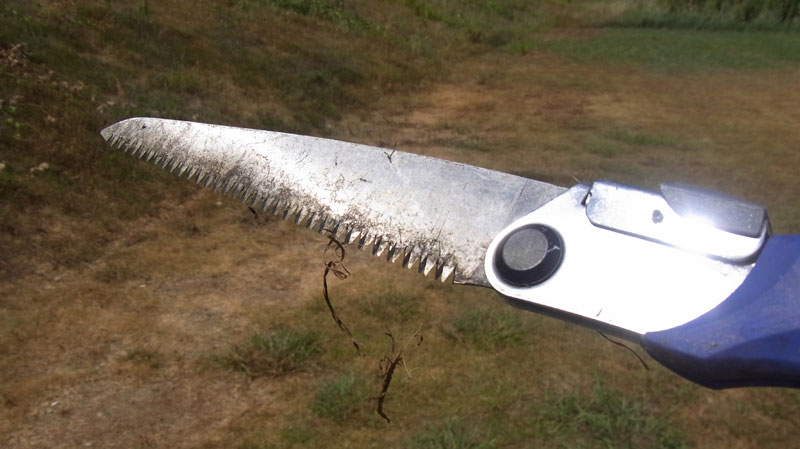 。折り畳みノコでなぎ払いながらの捜索です。手前からのアプローチは水