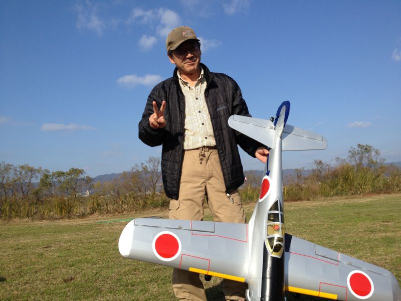 そうこうしているうちにおいやんがハヤテ君2号を持って参上。本日ロールアウトです。強風の中、良い感じで飛んでいました。旧日本軍の戦闘機は形が好きなので、スケール感たっぷりに飛ばしてくれると嬉しいです(^^)/ そのうちぜひ爆装して欲しいなぁ…。