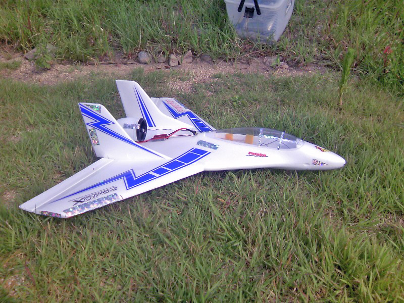 ホバリング状態でのHOLDでしたので、ほぼ垂直に地面に不時着。ハードランディングとなりました。夏場の草むらだったので幸いなことにランディングギ ヤ・フレームなどは無傷。ただ、サーボベッドが折れてしまったのとスピンドルおよびスタビバーがハの字型に曲がってしまいました。スピンドルの予備などは 持ってきていないので、残念ながら1タンクで終了