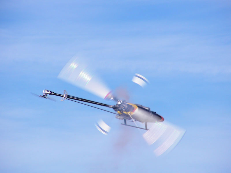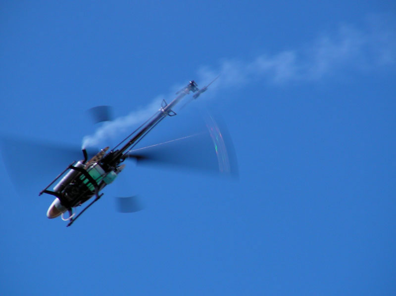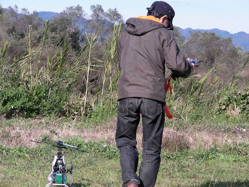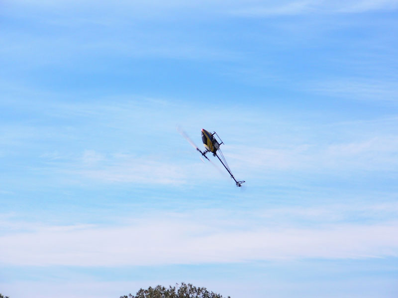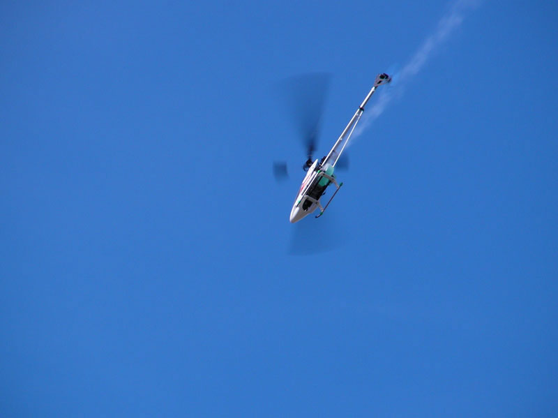 飛ばし始めると以前あったようなエンストライクな症状もなく、エンコンにも素直に追従しています。最初の1タンクはホバリングで、その後は軽く上空にあげ 様子を見ました。エンジンは少しピーキーな感じですが特にトラブル無し。ただ、ピッチがややマイナス気味です。ホバリング位置でやや過回転気味な感じでし たのでピッチカーブその他でとりあえず調整。一度ピッチを取り直した方が良さそうです。I戸さんの3Dフライト中