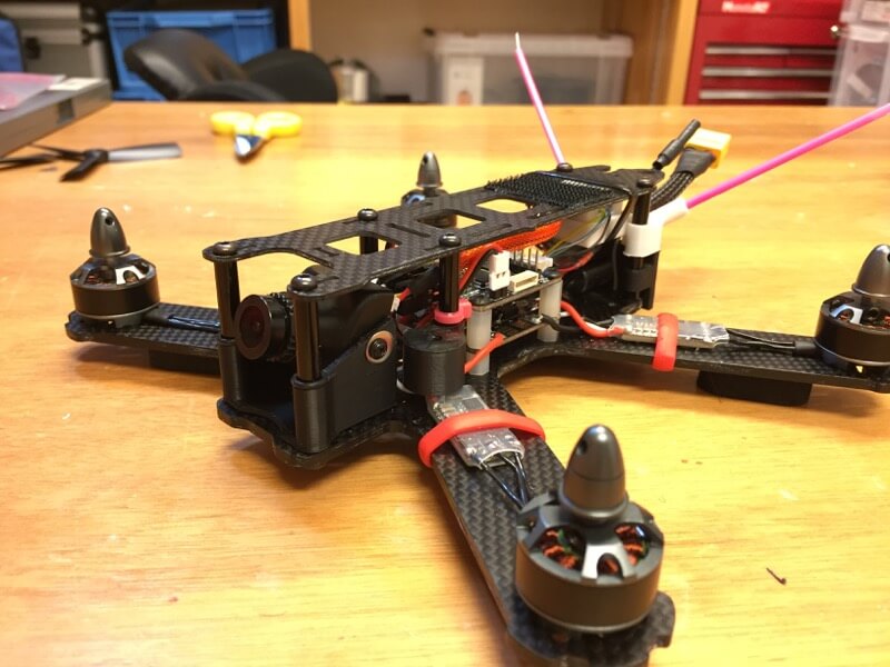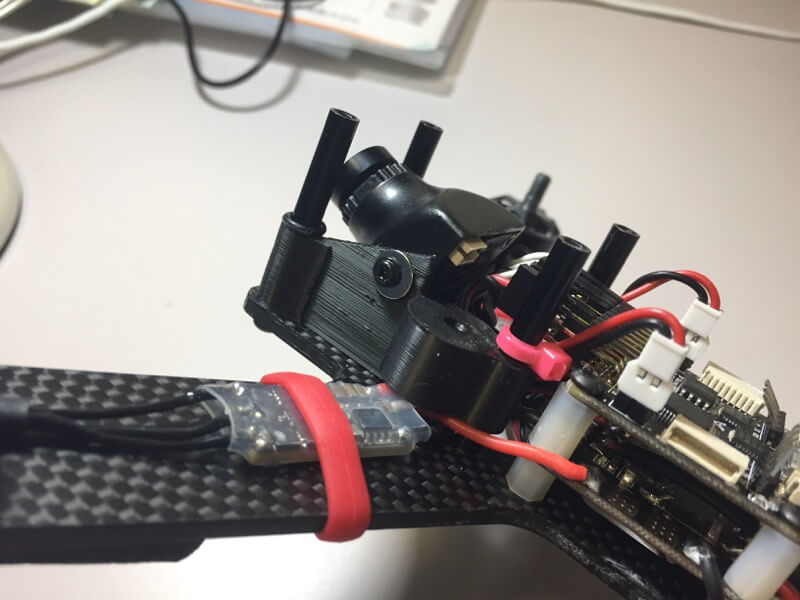 220よりもサイズが小さいのでなんせ細かくて苦労します。メカ類はほぼギッチリ。作れるパーツは3Dプリンタでワンオフ作成しています。きっちり採寸していても微妙に合わなかったり、強度が足りなかったり…一体いくつのゴミを量産したでしょうか…(笑) ただ、お手軽に作れるしM3ネジ穴など規格が決まっているものも多いので、ある程度作り込むと過去のパーツの組み合わせもできるのは便利です(^^♪カメラマウントやアンテナホルダーこういったものは比較的短時間で作れます(^^;;