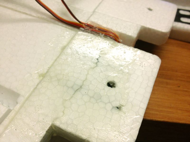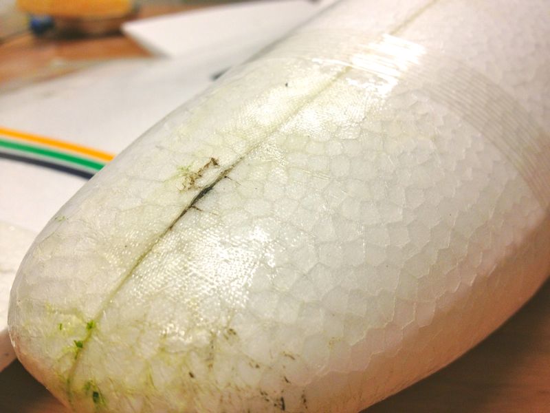 先日、強風に煽られ不時着したB2ですが帰宅後確認してみると主翼付け根部分にダメージが。もともと主翼はΦ2mmの細い木ねじで止めるようになっているのですが、精度がさっぱりで中途半端に留めてしまったことも影響している感じでした。そこでもう少し径の大きなコーススレッドに変更。がっちり止まるようになりました。 主翼付け根部分はカーボンロッドを差し込み、グラスマット+アラルダイトで補強。普通に飛ばしているくらいなら大丈夫かと。 ノーズ部分のパックリ割れもグラスマット+アラルダイトで補強し、グラステープを巻いておきました。そのうちここもグルグル巻にしないといけないのかな? あとは飛ばすだけ、ですがお天気はどうなんでしょうか…。