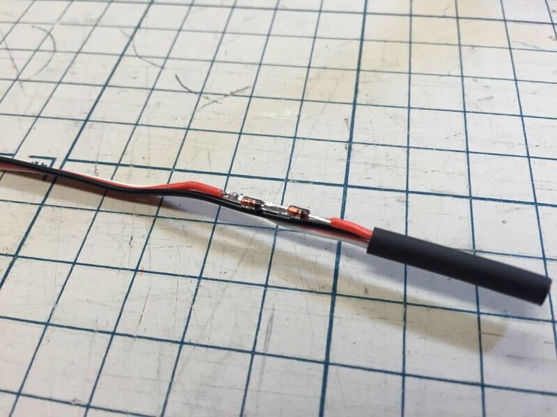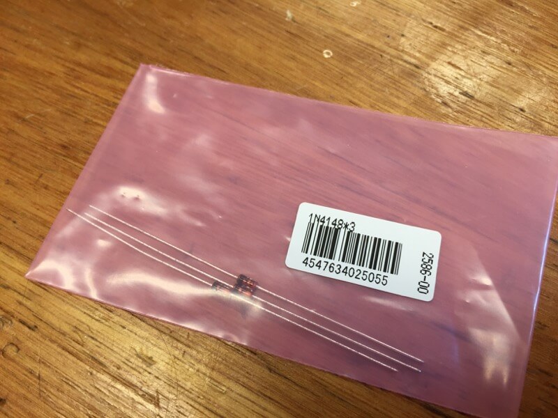 定番はダイオードで電圧を下げる技らしいので、早速手持ちの1N4148を使って電圧を下げてみました。VFが0.6Vだと思われるので2個直列にし1.2V程度下げてみます。するとR7008SBでも普通に使えることが判明。安いブザーですが、一手間加えないといけない場合があるようです。もちろんポリスイッチは噛ませています(^^;;