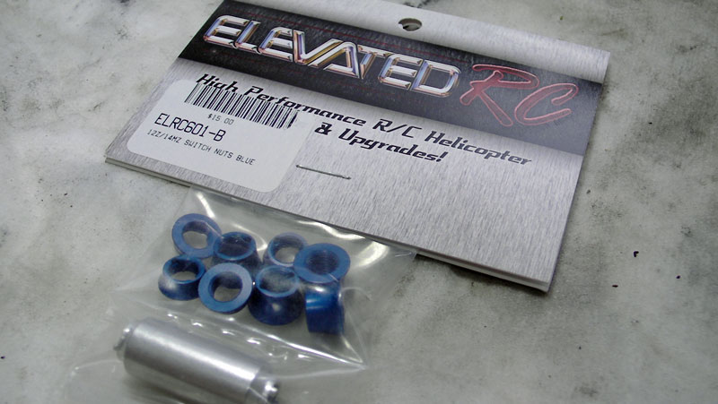ネットサーフィンしていると、ラジコングッズが星の数ほど販売されているのがわかります。目的のモノを探すのにも一苦労ですが、そんな中見つけたのがElevated RC製のプロポ用スイッチナットです。FUTABAやJR等のプロポに取り付けられるスイッチナットで、色も赤・青・オレンジ・緑と4色あります。今回は青をチョイス。国内では販売がありませんので、海外代理店へ発注します。ところが何を勘違いしたのか最初はFF7/10用のスイッチナットを注文してしまいました