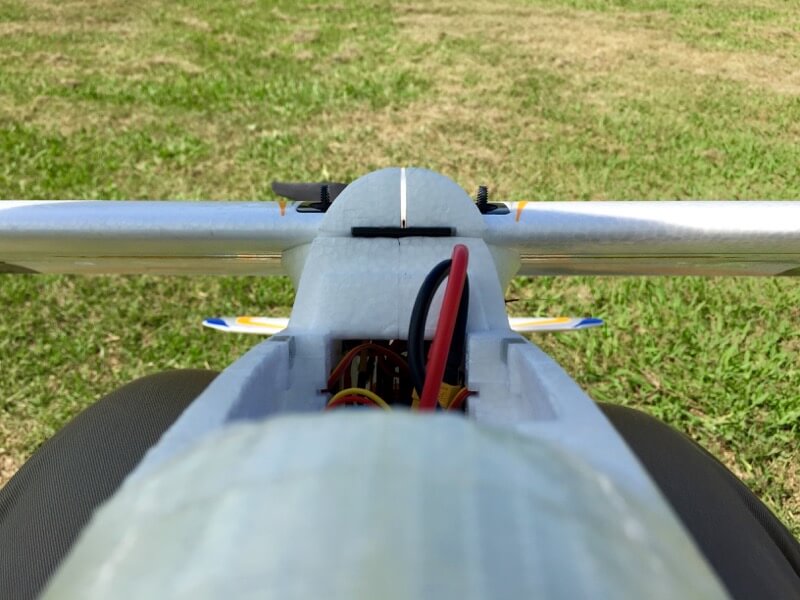 おろしてみると水平尾翼が付け根部分から少しねじれていました…。この暑さで車内においていたのがまずかったんでしょうか…。とりあえず用手整復しましたが、補強を入れるなどしてもう少しねじれを抑えたほうが良さそうです。