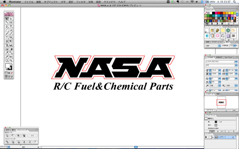 あとはHYPERION。太陽っぽいマークは上下ほぼ対象となっているようで、片方だけをトレースして複製。あまり小さくしてしまうと文字の部分が潰れかねないので、実際の大きさは今後の検討課題に。敏ボーさん、今しばらくお待ち下さいね。