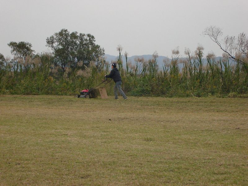 左:離陸寸前のN先生 右:草刈りにいそしむNセンセ