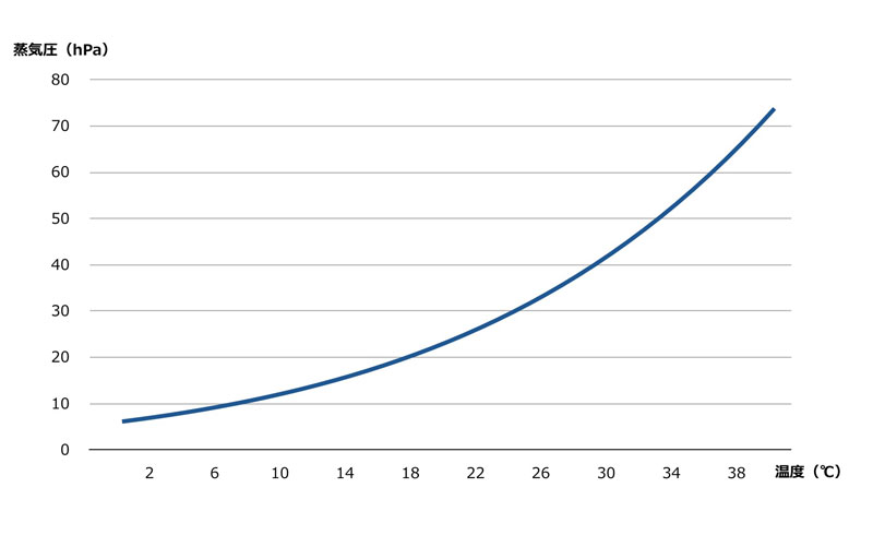 また、飽和水蒸気圧はTetensの式で近似でき、0℃で6hPa、30℃で42hPa程度と考えられます。 これらを考慮すると