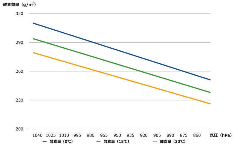 【夏と冬では単純計算でも10%くらい酸素濃度が違う】