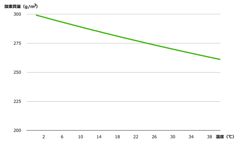 ■気温が10℃上昇すれば約3〜4%程度の酸素量減少