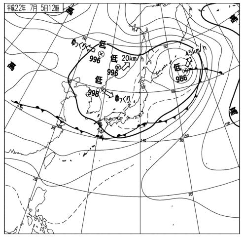 先日の天気図。お天気のいい日と較べると15hPa前後も違います。高度にすると100〜150mほどでしょうか。