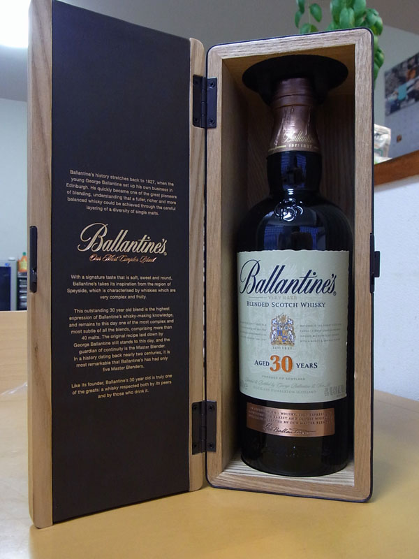 に入り、体が温まったところで嫁さんからバランタインを頂戴しました。30年ものです。バランタイン30年をはじめて飲んだのは11年前、大阪のリッツカールトン(もちろん接待で)だったような…。それ以来、時々嫁さんに貰ってはちびちび飲んでいます。12年や17年も美味しいのですが、30年はちょっと緊張します(^^;; 普段飲みはもったいなくてできません。貧乏性です…。