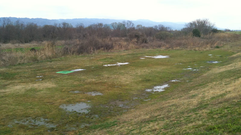 。JYALAさんはバーレスを組んだらしいし、誰かいるかと思いましたが結局誰もいませんでした。飛行場は結構水浸し。明日までには回復するのでしょうか? 堤防そばの菜の花が春の訪れ