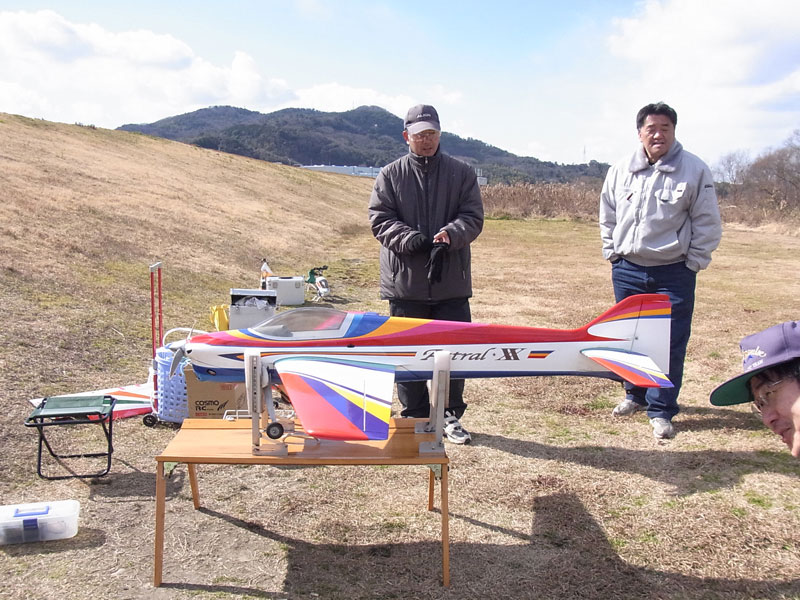 肝心のフライトは…JYALAさんが3F?、Nセンセが2F、T口さんは2F?、あとの皆さんは1F以下でした。0という方も…。まぁ、この風では飛ばし難いものがあるのは確かですね。僕は初号機で遊んでみましたがラストのオートロ時、