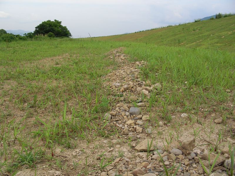 以前の飛行場は野芝・荒芝が一面に生えていて時々芝刈りをすれば飛行機も余裕を持って着陸できるほどの整地状態だったのですが、今回の改修工事によって飛行場の地面は余所から運ばれてきた『岩石たっぷり』の土で覆われてしまいました。改修工事後、何人かのフライヤーで大きな石を取り除いたりするなどの整地を行ってきていますがまだまだ以前のような状態にはなりません。