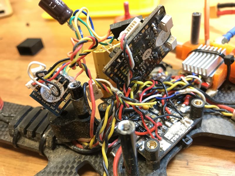 機能の快晴とは打って変わって朝からどんより、昼から雨。Yiの収差補正無しで撮りたかったので小雨降る中2Fだけ飛ばしてきました。B号機でしたが、着陸時にFPV画像が途切れてしまう怪しげな事態も発生。空中じゃなくて良かったです。VTxの問題ではなく、OSDの配線が甘くなっていたようで帰宅後補修。ついでにFCへの電源も切れ掛かっていることが判明(゚д゚)! スパゲッティ配線なのでたまには見ておかないと…((((;゚Д゚))))ガクガクブルブル