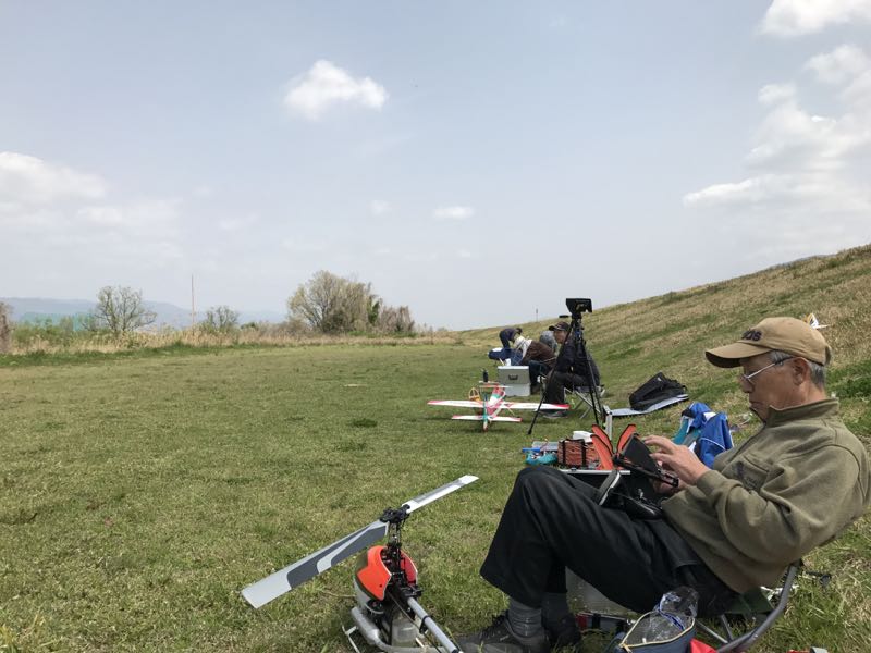やや風があるものの、すっかり寒くなくなった飛行場。正午過ぎから色々飛ばしました。K2さんのBixlerはRunCamSplit2でFPV化。モニタ越しで飛ばされたみたいですが、LOSに軍配が上がったようです。次は是非ゴーグルで(^^♪