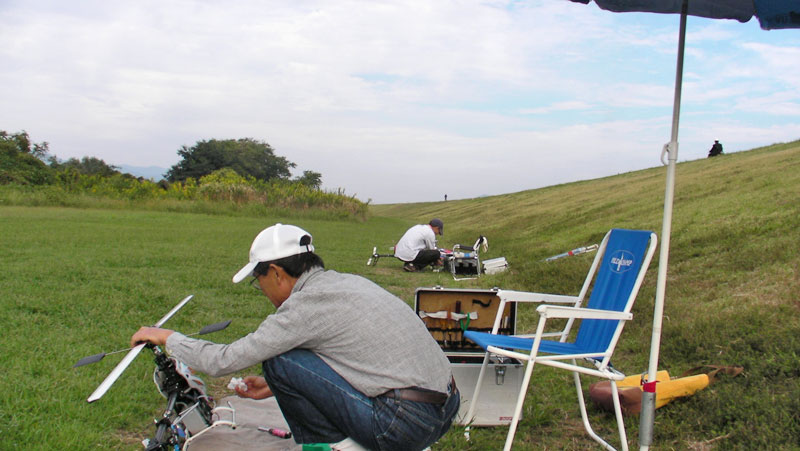LiPo化した初号機を持って仕事帰りの飛行場へ。やや曇り空ながらも全くの無風で、寒くもなく非常にいいコンディション